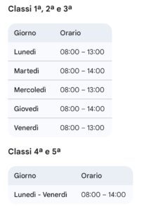 Classi 1ª, 2ª, 3ª effettuano 27 ore settimanali ( tre giorni da 5 ore e 2 giorni da 6 ore).